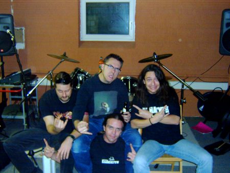 Holger: Ja, das Demo ist nat�rlich auch zum Teil hier im Studio entstanden. Zum Teil auch beim Kalli im Studio. Hier haben wir Gesang, Schlagzeug und Ba� reingehauen und die Gitarren haben wir beim Kalli gemacht. Pressen lassen haben wir dann 500 St�ck. |